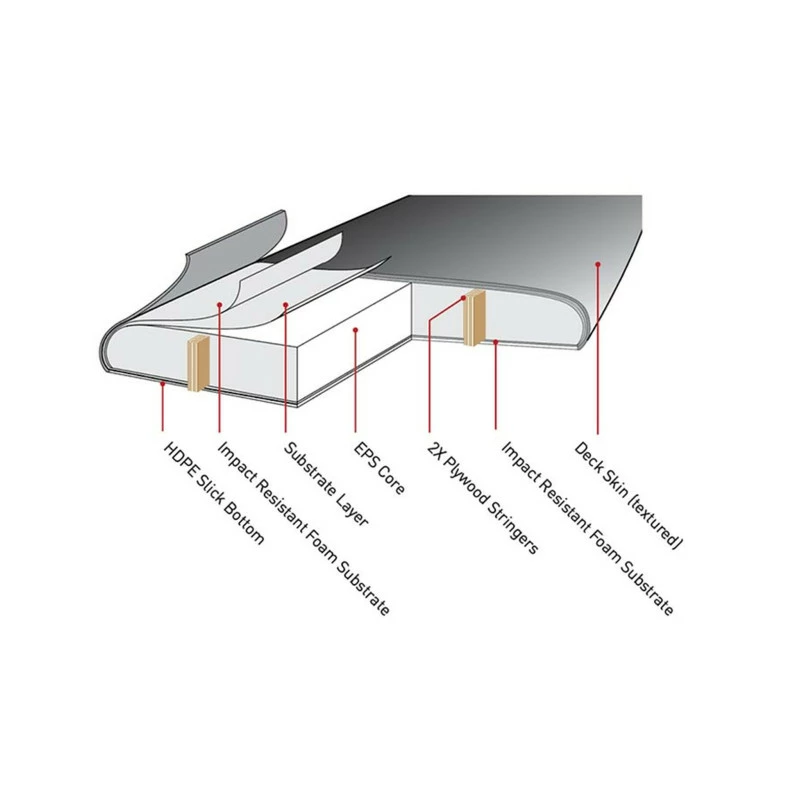 – Dessous HDPE : plaque en polyéthylène haute densité, très résistante et procure une meilleure glisse