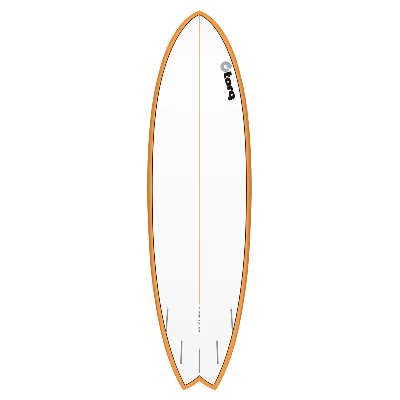 Cette planche Torq Mod Fish offre un volume important sur la partie avant avec un faible rocker ce qui la rend facile à la rame et stable au take off.
