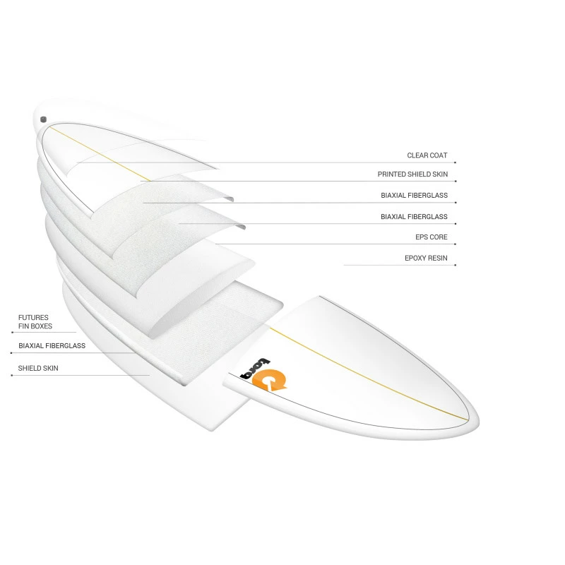 Construction de type Epoxy Torq TET qui en fait une planche légère et ultra résistante.