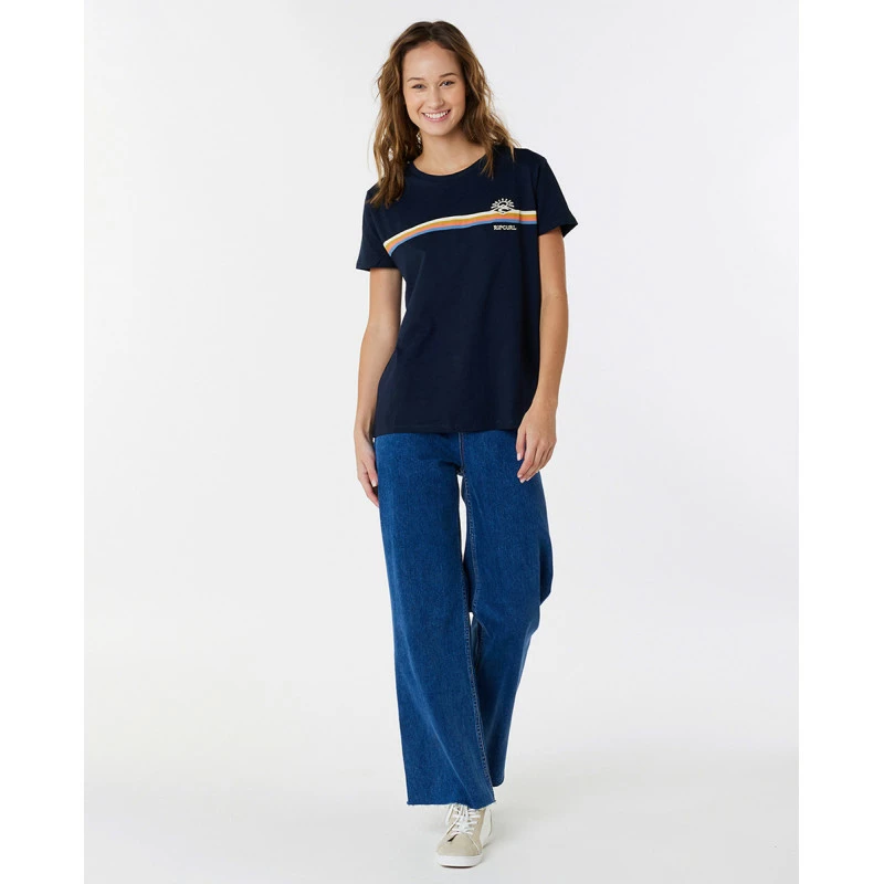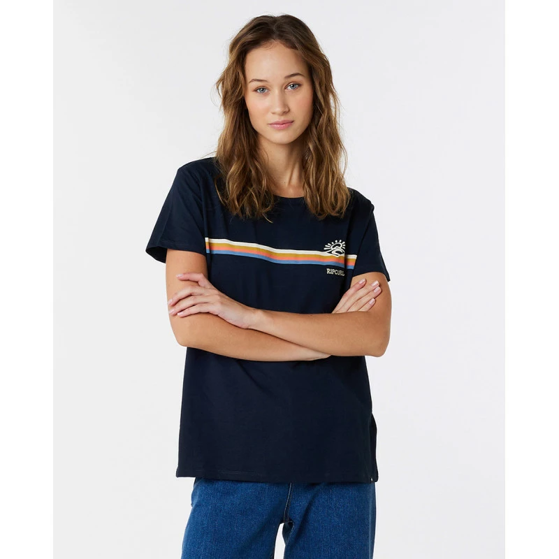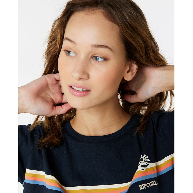 Le modèle Melting Waves de Rip Curl, facile à porter, s’accordera avec toute votre garde-robe. Il comprend une subtile rayure sur le devant et une broderie sur la poitrine.